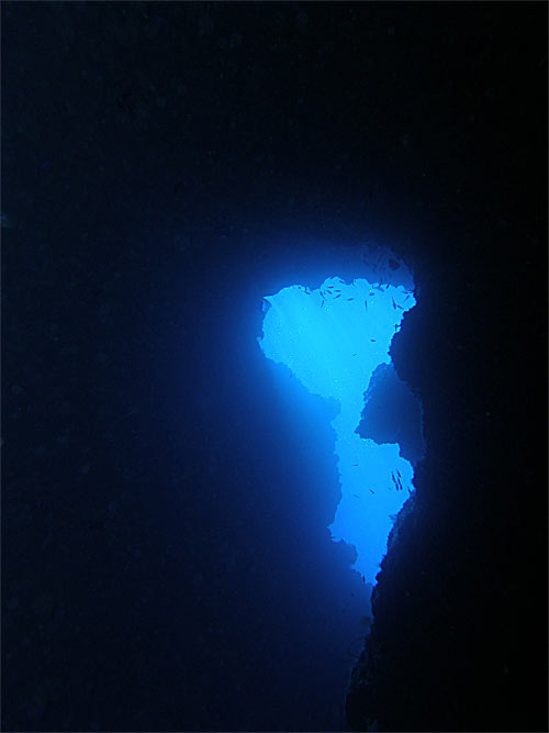 リーフにある4つの縦穴が下に突き抜け、下でドームを形成している。こちらも世界的に有名なダイブ・サイト。素直に美しい。